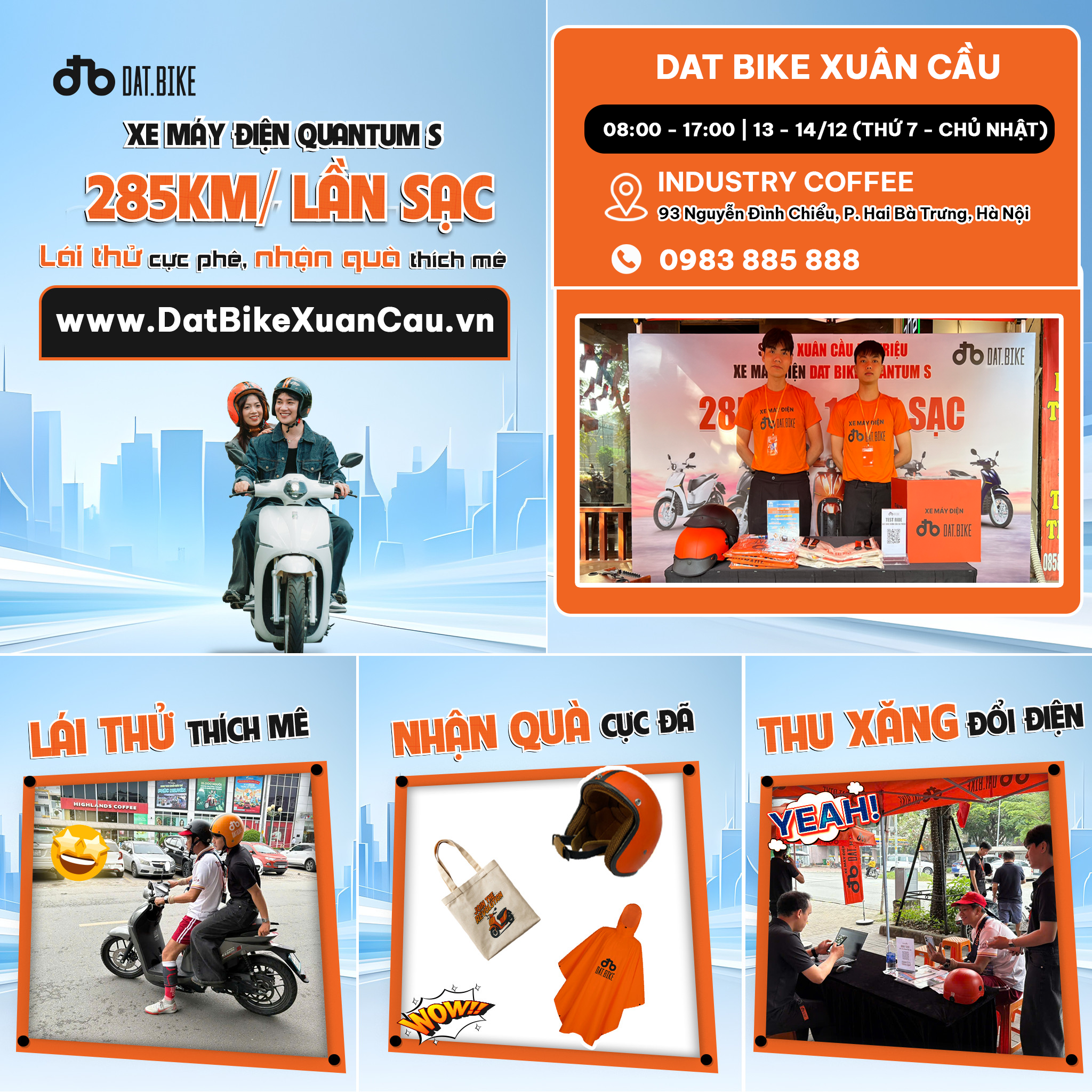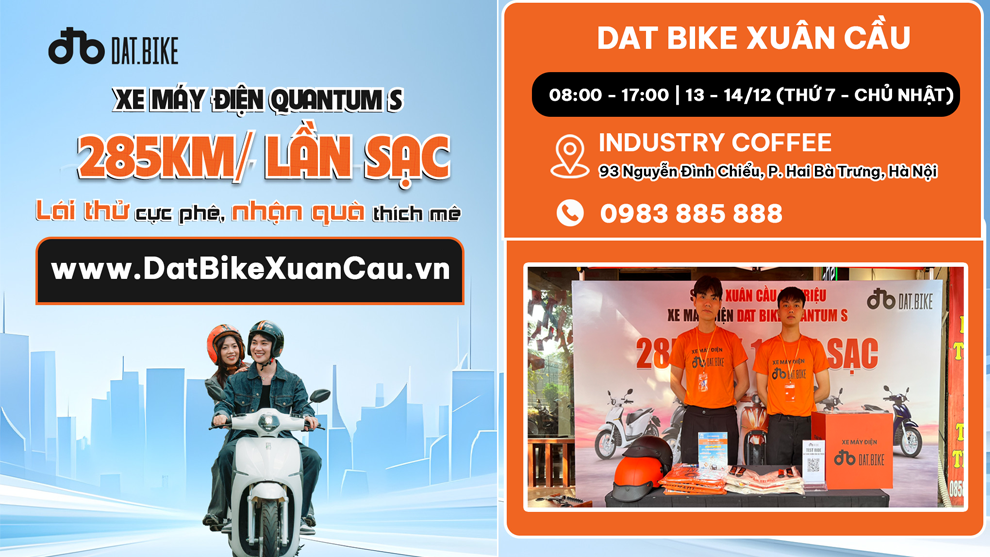 Đừng bỏ lỡ cơ hội trải nghiệm trực tiếp xe điện Dat Bike Quantum S và nhận quà hấp dẫn cùng Dat Bike Xuân Cầu!
