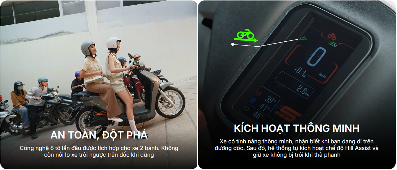 Khi xe đang đi lên dốc, thao tác bóp và thả phanh sẽ tự động kích hoạt lực đẩy để xe không bị tụt lại đằng sau.