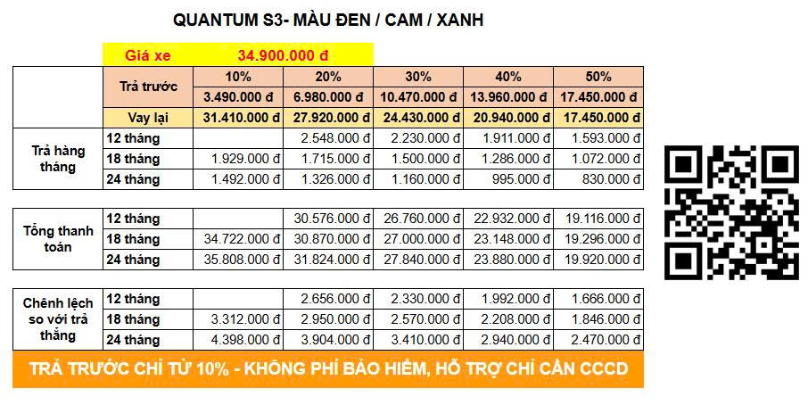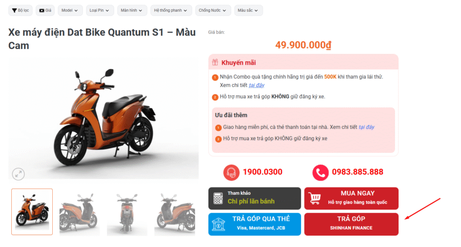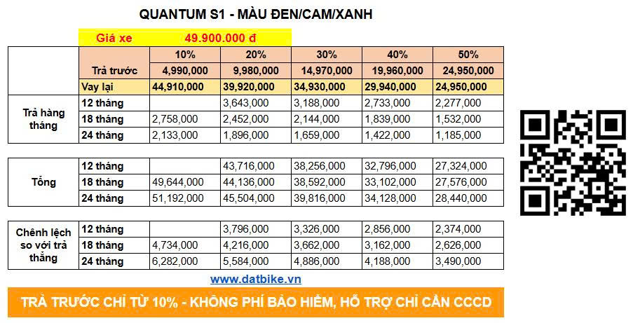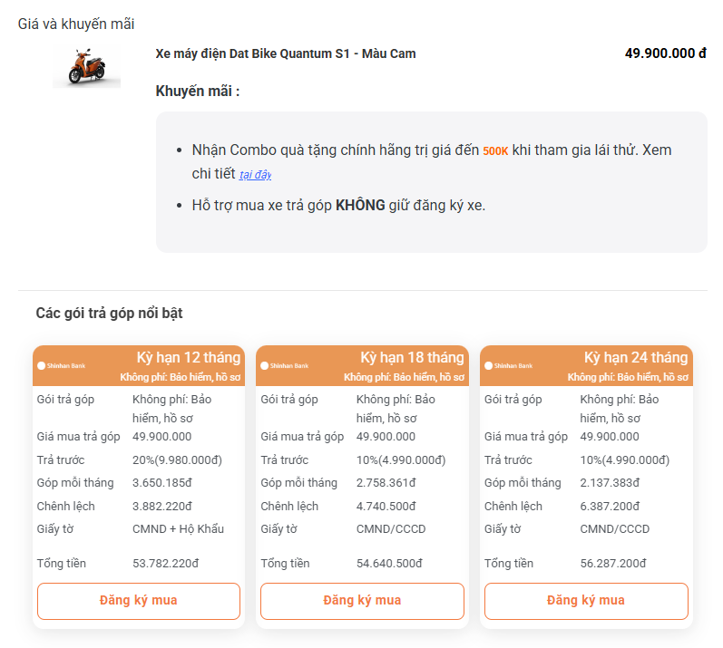 BẢNG CHI PHÍ ƯỚC TÍNH KHI MUA XE MÁY ĐIỆN DAT BIKE TRẢ GÓP QUA SHINHAN FINANCE