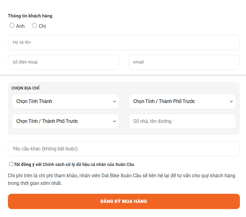 Sau khi hoàn tất các bước trên, nhân viên tư vấn của Dat Bike Xuân Cầu sẽ liên hệ lại để thông báo kết quả với quý khách hàng.