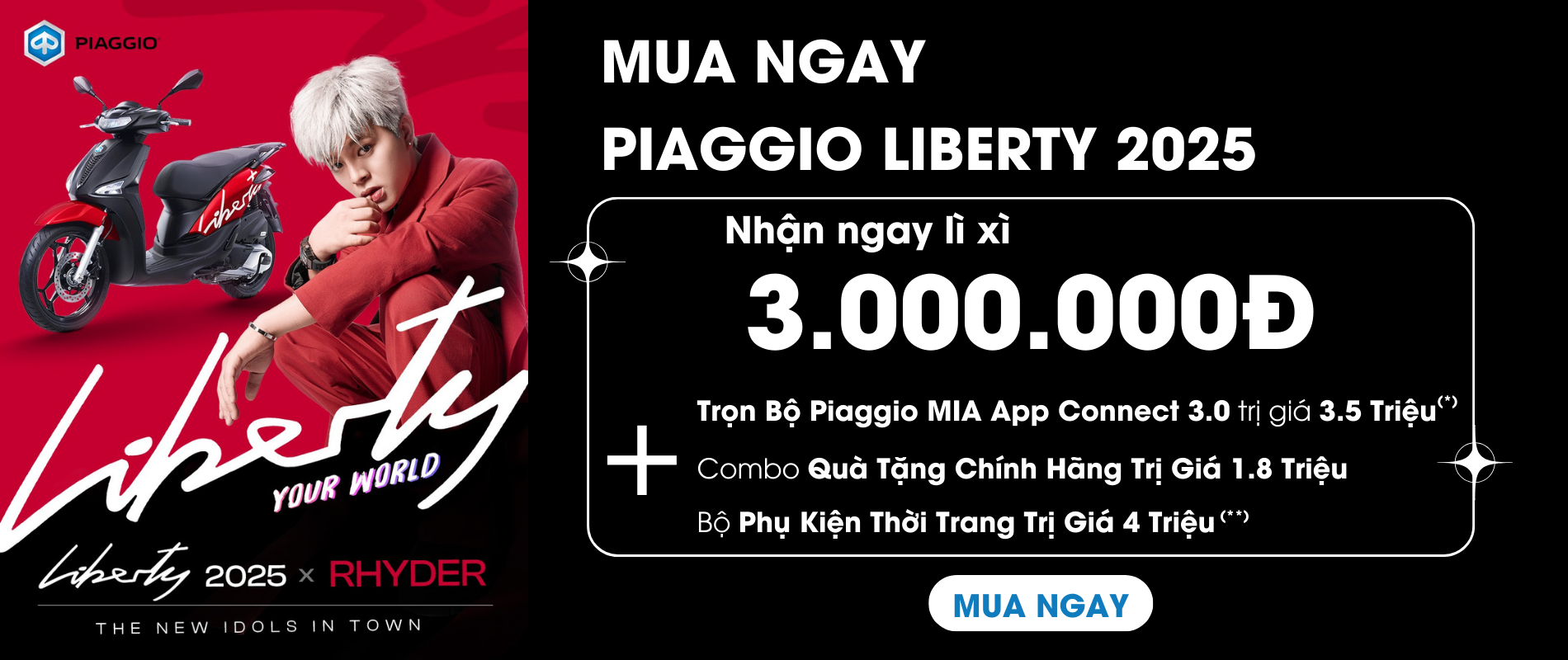*Khách hàng khi lựa chọn quà tặng là “Trọn bộ Piaggio MIA APP Connect 3.0” sẽ nhận lì xì tiền mặt tối đa là 01 Triệu đồng.
