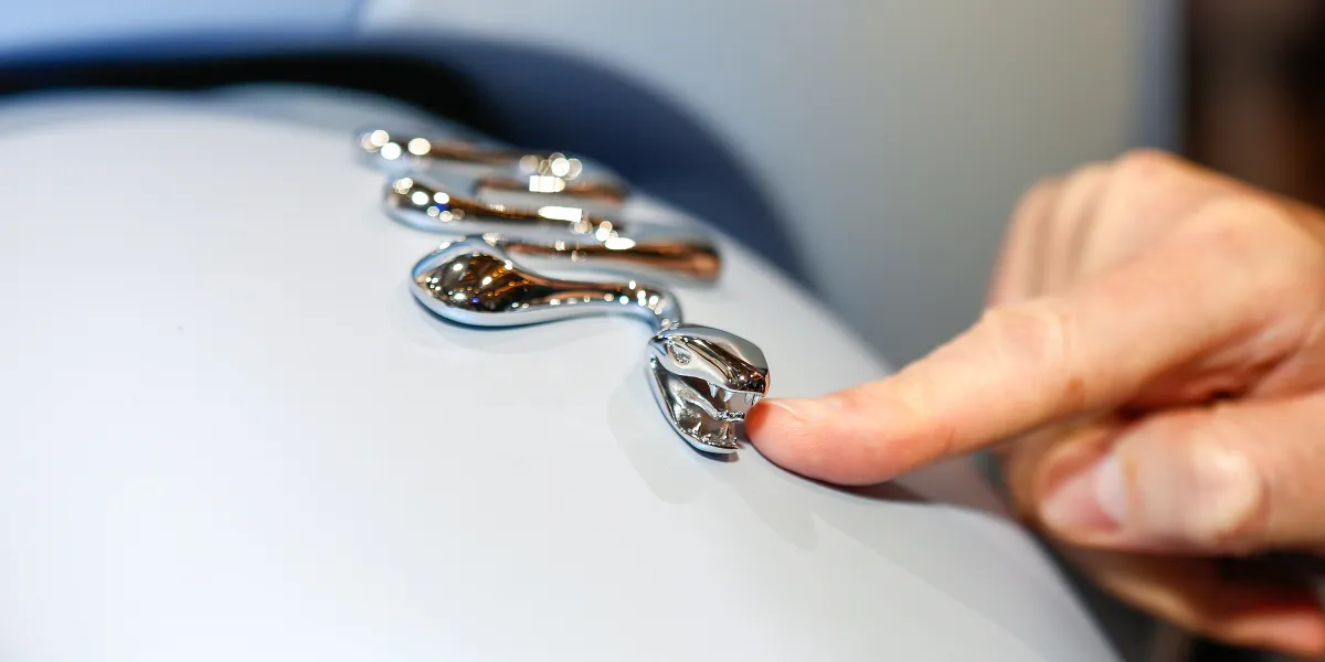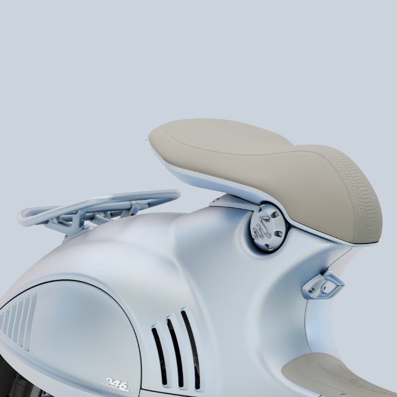 Từ màu xanh ánh kim, thay đổi tinh tế theo ánh sáng, đến kết cấu da rắn sang trọng, đầy tinh tế trên yên xe và tay lái. Vespa 946 Snake cuốn hút mọi ánh nhìn, vừa hé lộ vừa ẩn giấu những chi tiết đầy mê hoặc.