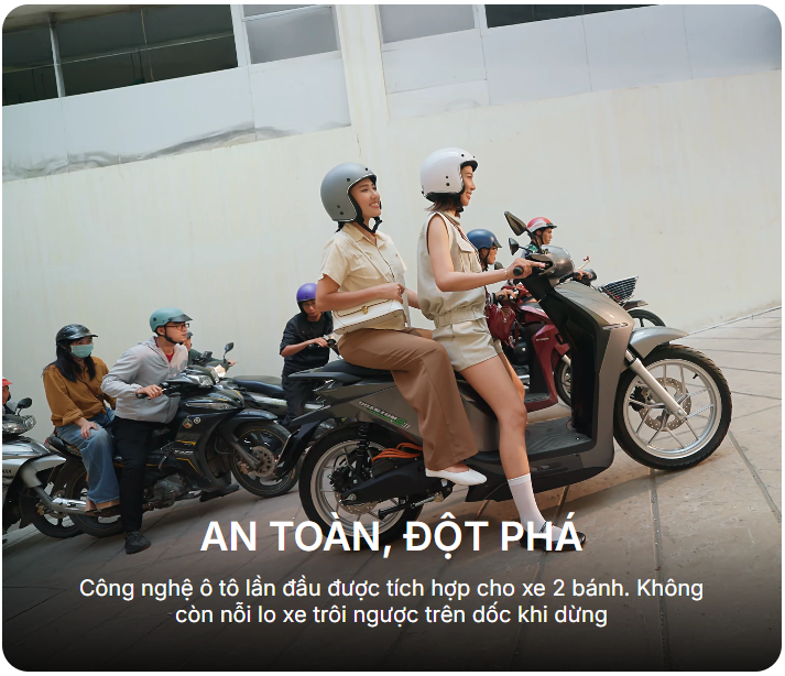 Hỗ trợ khởi hành ngang dốc (Hill Assist), Cruise Control, chức năng chống trộm Anti‑theft, gọi xe từ xa (Call My Bike), và chế độ lùi nhẹ nhàng (Reverse Mode) cùng khóa tự động thông minh