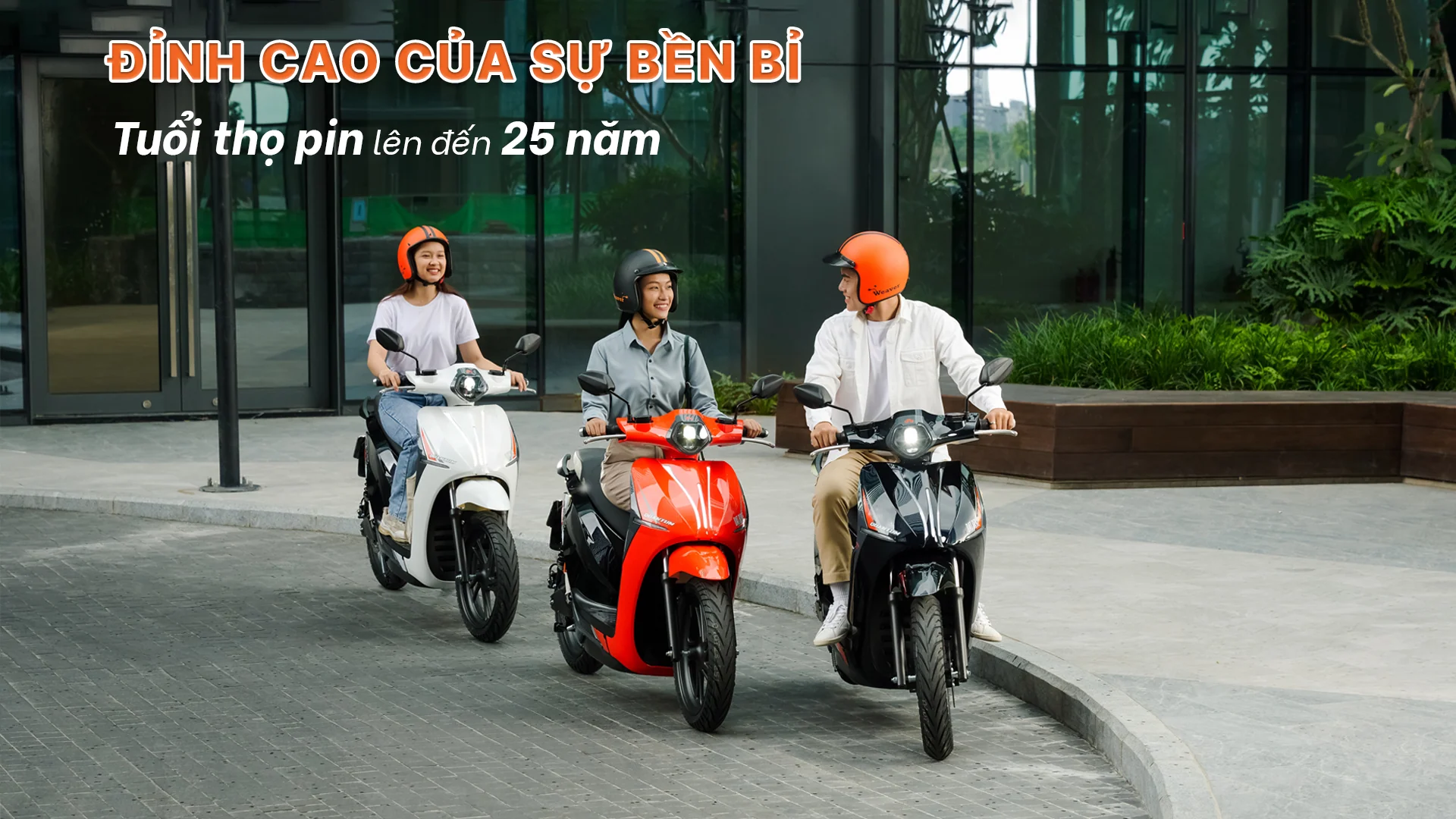 - Công nghệ pin LFP & Chuẩn chống nước IP67: Pin Lithium-ion thiết kế theo tiêu chuẩn chống nước IP67 cho động cơ, pack pin, cổng sạc và bộ điều khiển điện tử ECU, và IP65 cho các chi tiết khác. Tuổi thọ pin 10 năm, tương đương 100.000km.