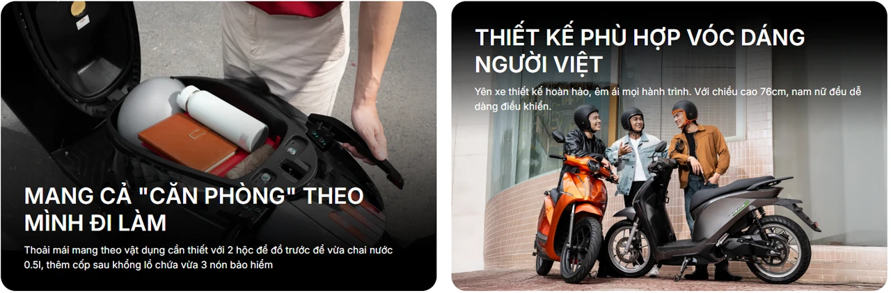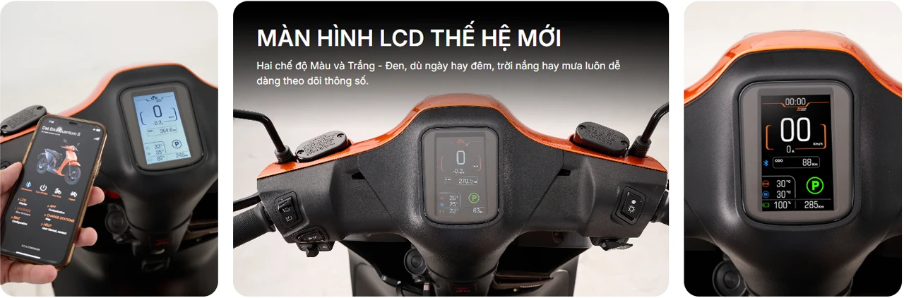 Các xe Dat Bike có 2 chế độ lái: “Drive” êm ái, tiết kiệm pin cho đi lại hàng ngày và “Super” siêu cấp dành cho người đam mê tốc độ, dễ dàng chuyển đổi bằng nút bấm. Về cốp xe, Dat Bike Quantum nổi bật với cốp 41 lít, là cốp xe máy lớn nhất Việt Nam. Quantum S2 cũng có cốp siêu to 44L (3L cốp trước và 41L cốp sau). Quantum S3 cũng có 2 hộc để đồ phía trước và cốp sau lớn