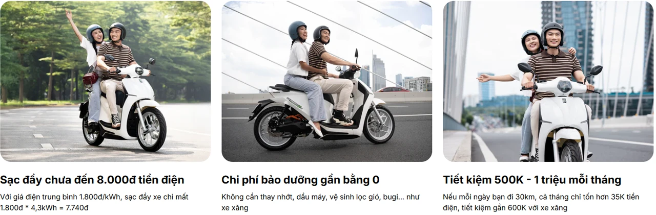 Xe máy điện Dat Bike cực kỳ tiết kiệm chi phí. 100km chỉ tốn khoảng 7000đ tiền điện, tiết kiệm gấp 6 lần xe xăng. Ngoài ra, bạn hoàn toàn không tốn tiền bảo dưỡng hay thay nhớt định kỳ như xe xăng. Ví dụ, sạc đầy Quantum S3 chỉ mất chưa đến 8.000đ tiền điện. Nếu đi 30km mỗi ngày, bạn có thể tiết kiệm gần 600.000đ/tháng so với xe xăng.